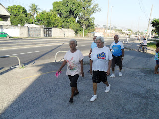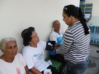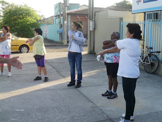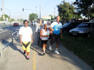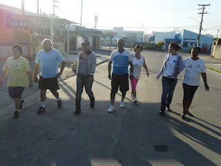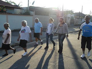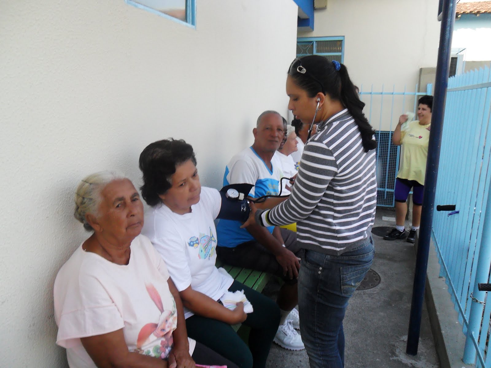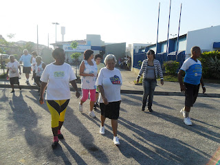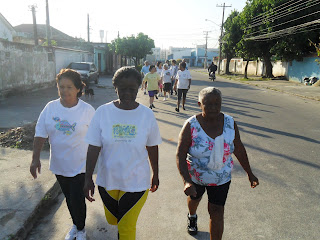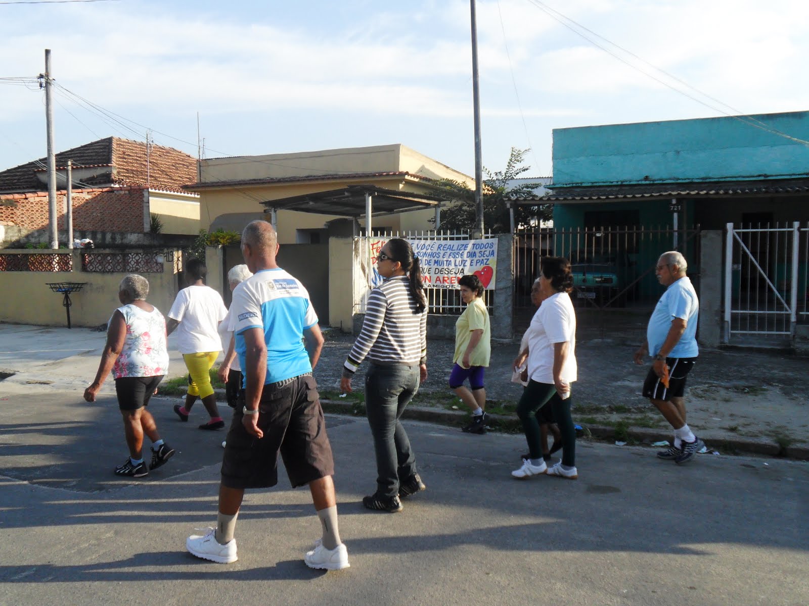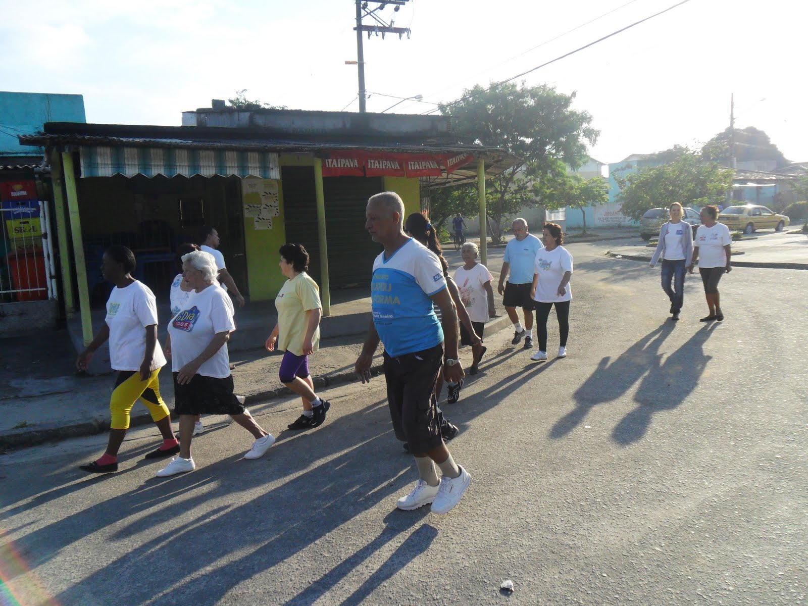 Caminhada realizada com o grupo da Melhor Idade, todas as 3ª e 5ª-ferias, pelas ruas do Bairro e medição de PA antes e após evento.